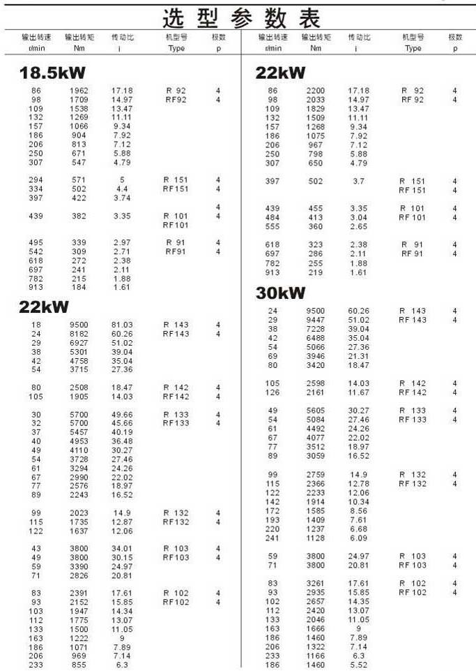 選型參數(shù)表18.5kW(續(xù)),22kW,30kW