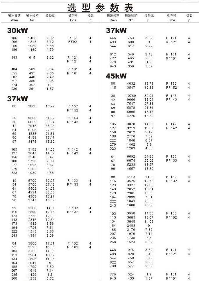 選型參數表30kW(續),37kW,45kW